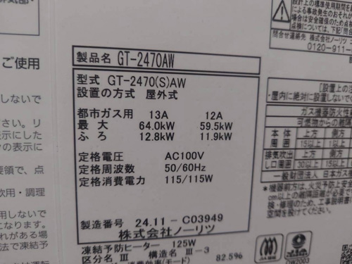 松茂町中喜来 ノーリツ給湯器GT-2470AW 給湯器交換工事|徳島県で給湯器交換・取り付けなら|激安給湯器交換、徳島給湯器.com
